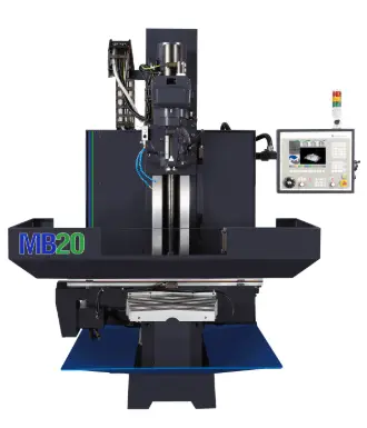 The MB20 has 40″ x 20″ x 24″ travels and a large five T-slot table. Use the manual capability or program conversationally. This is one of the most user-friendly tool room machines on the market today.