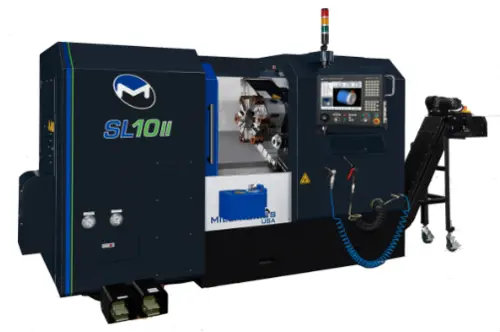 The Milltronics SL Series of CNC lathes offer a great combination of features and performance at an attractive price. They are well built, reliable, and easy to use. The SL Series features robust, true slant bed castings, linear motion guide roller ways, direct coupled ballscrews, and the 9000 control.