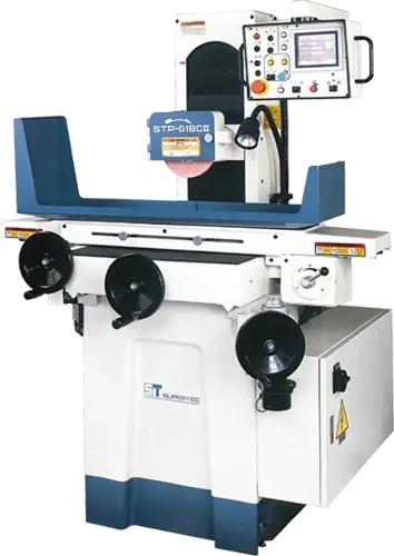 - PLC control uses a menu-driven LCD touch screen is easy to learn and easy to set. Simply fill in the blanks to set total grinding amount, rough increment, fine increment, sparkout passes, feeding direction, parking position, wheelhead retract distance, and press cycle start to complete automatic grinding cycle. (CII models only)
