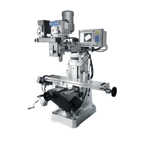 This is a simple, easy to use3 axes CNC control vertical mill. Ball screws and servo drives are installed for longitudinal and cross travel. 3 axes Digital Readout System are installed on the table, saddle and quill. The Millpwr G2 CNC has G code and conversational type programming. The CNC system is built on the top quality SHARP vertical mills frame.