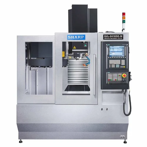The Sharp SVL series of compact linear guide way vertical machining centers combine high productivity with great accuracy. All structural components are made of Meehanite castings and internal ribs running throughout each section. The standard option come with spindle speeds of 10,000 or 12,000 rpm but affordable upgrades can be made with 15,000 rpm or 20,000 rpm spindles, glass scales and 4th axis capability.