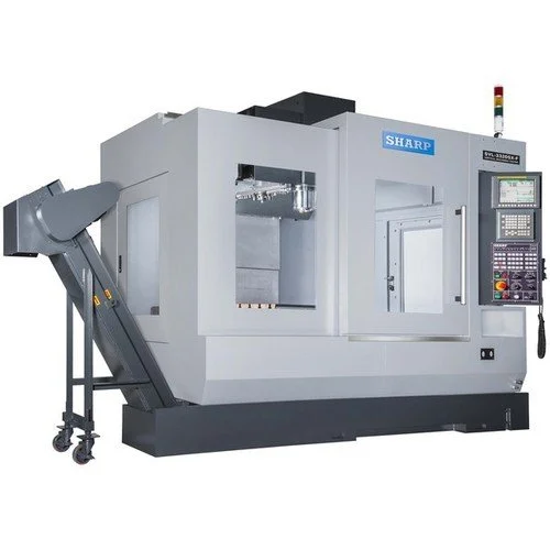SHARP Industries is offering a new model of Linear Guide Vertical Machining Center with 33” x 20” x 22” travel. It will has a rapid traverse of up to 1,417 inches per minute,which provides users with quick positioning of the work table. The standard spindle speed is 8,000 rpm with options of 10,000 or 12,000 rpm speed. The model uses a Siemens 828-240 control system.
