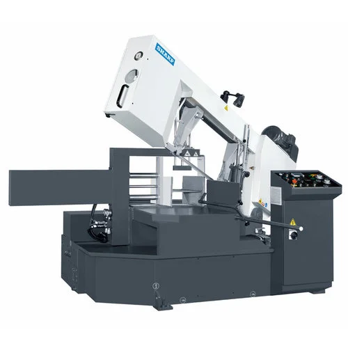 This is a semi automatic miter saw with saw frame that can swivel 0° to 60° for cutting work pieces. Angle change is facilitated by pivot system for accurate angle cuts. It is equipped with full stroke hydraulic vise clamping and easy to operate control panel.