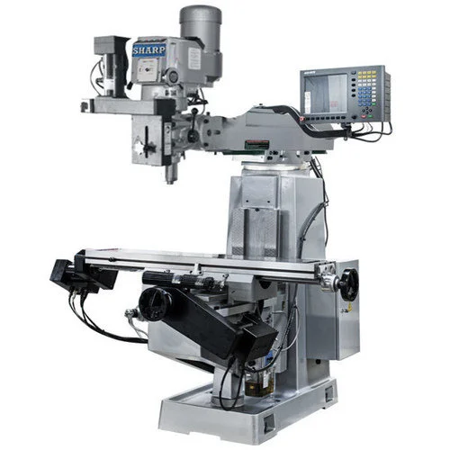 This is a simple, easy to use 3 axes CNC control vertical mill. Ball screws and servo drives are installed for longitudinal and cross travel. 3 axes Digital Readout System are installed on the table, saddle and quill. The Millpwr G2 CNC has G code and conversational type programming . The CNC system is built on the top quality SHARP vertical mills frame.
