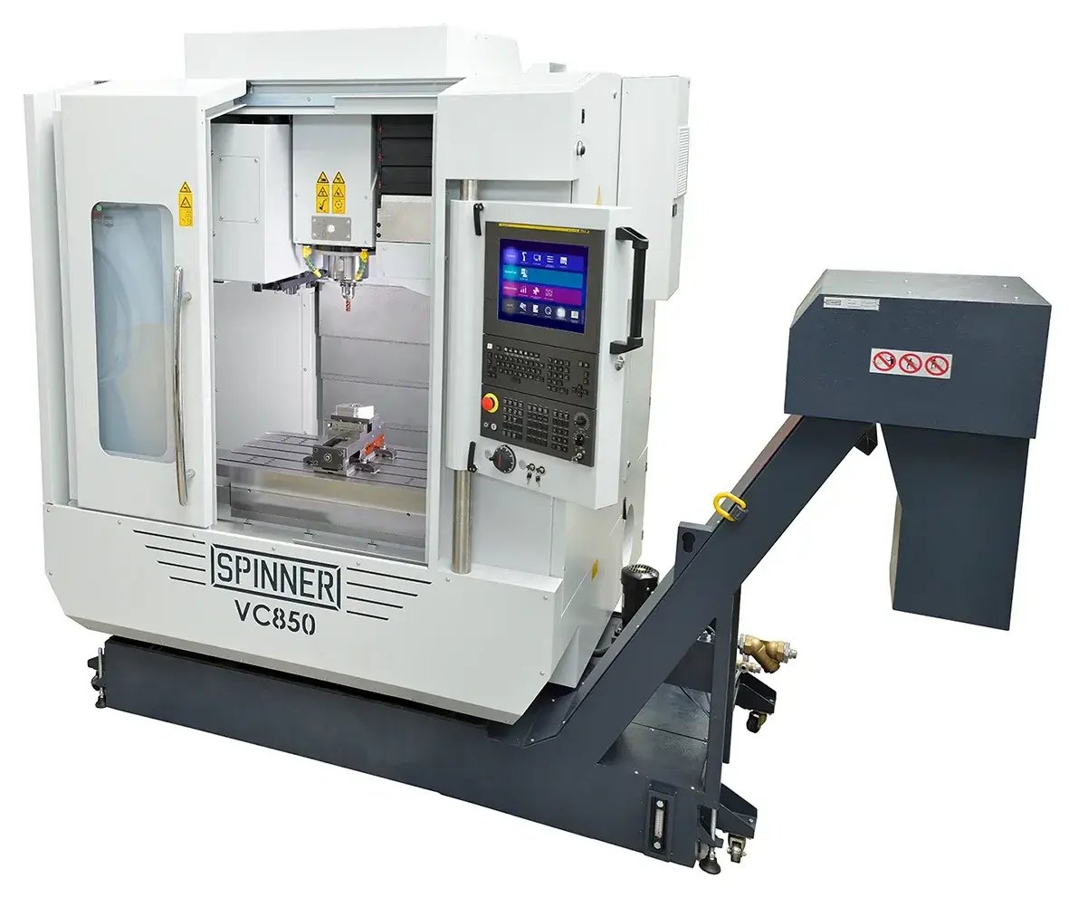 Designed as a compact machining center, the VC850 has a patented one-piece way covers in the X & Y axis, eliminating the accordion style cover, and reducing the required floor space up to 30% over similar machines with the same working area. The overall design is perfect where there is very limited floor space.