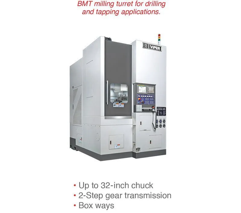 Vertical turning lathe provides efficient cutting coupled with high precision accuracy. Viper feed capacity provides excellent vibration absorption and chatter-free cutting.
