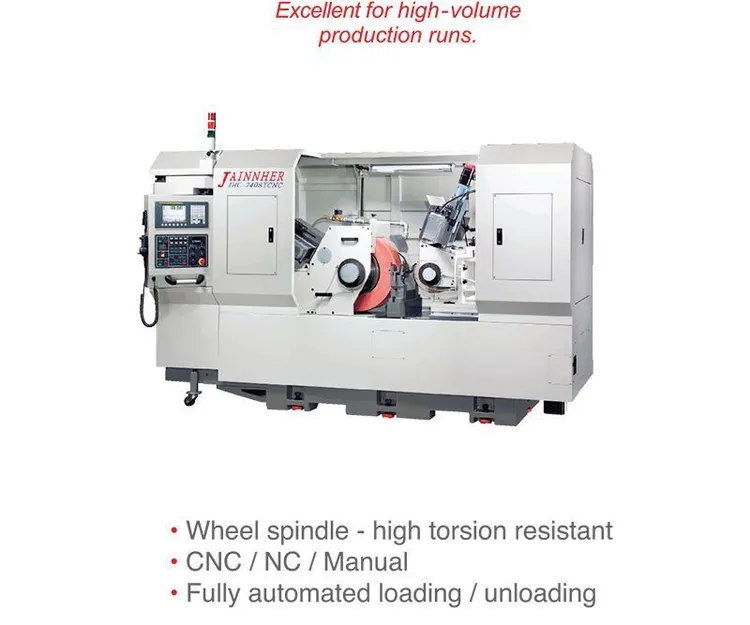 Centerless grinder-Uses a hydrostatic wheel spindle coupled with high pressure oil film for added precision under heavy loads. Grinder does not require center holes, drivers or workhead fixtures. Grinding applications: cylindrical, tapered, or formed.
