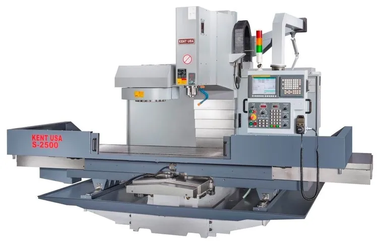 Discover precision engineering with the KENT USA S-2500 CNC Toolroom Bed Mill. Featuring a 30”x112” table, 8000 RPM CAT-40 spindle, and Fanuc 0iMF CNC. Enjoy superior rigidity with Meehanite casting and rapid feed rates of 393”/min. These are geared towards facilities that require high-production capacity with high speed and accuracy. In addition, this line of milling machines is perfect for workpieces that require more Z-axis clearance and higher payload.