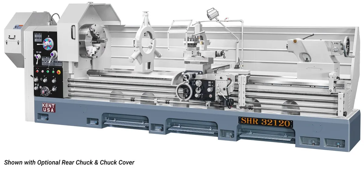 All of our large oil country lathes are equipped with a single piece bed and base design for extra rigidity. They are also equipped with a 3rd rail support for enhanced cutting force. In addition, the locating pin-locking style 4-way tool post allows for easy swiveling but also ensures the rigidity in cutting. Auto lubricating system for slide ways also comes standard for extra longevity and precision. Kent USA big bore lathes may also be equipped with double chucks at both sides of the headstock. In addition, rotary quill option on tailstocks is also available for better workpiece clamping.